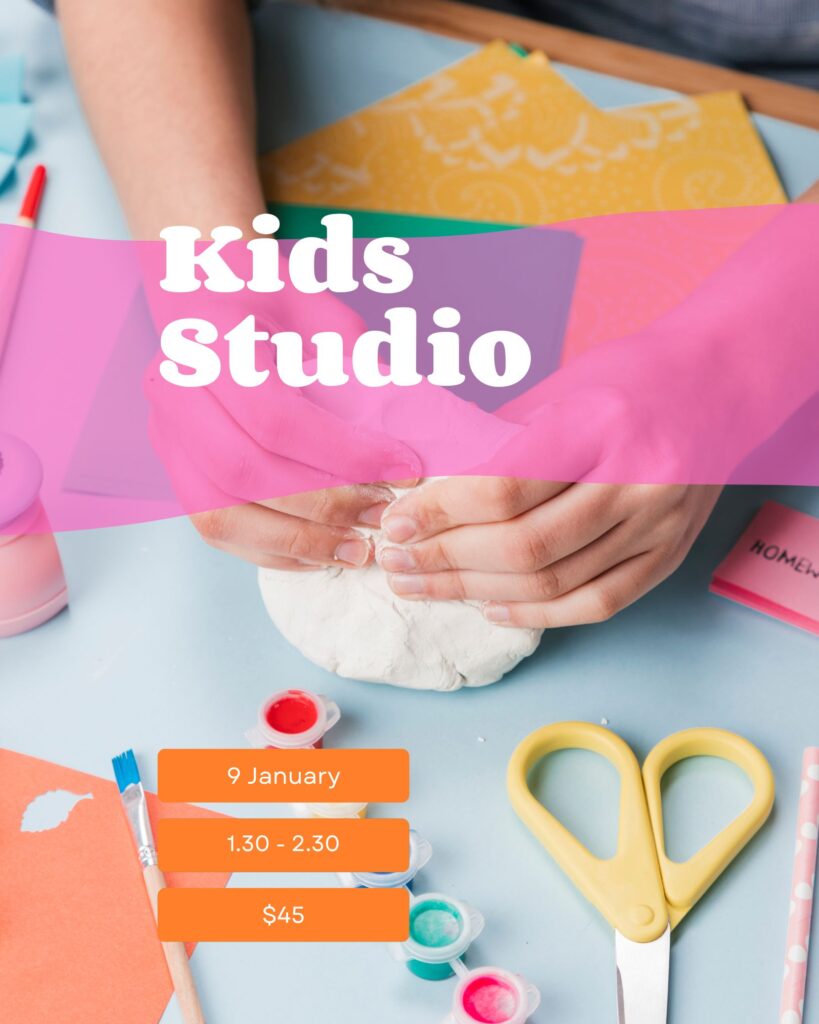Kids Studio is a bright, playful hour of creativity designed for curious little makers. Our craft tables this session are set with pet rock painting, rainbow paper collages, flower crowns, and pipe-cleaner flowers, plus plenty of extra materials for free play and experiment-as-you-go fun.